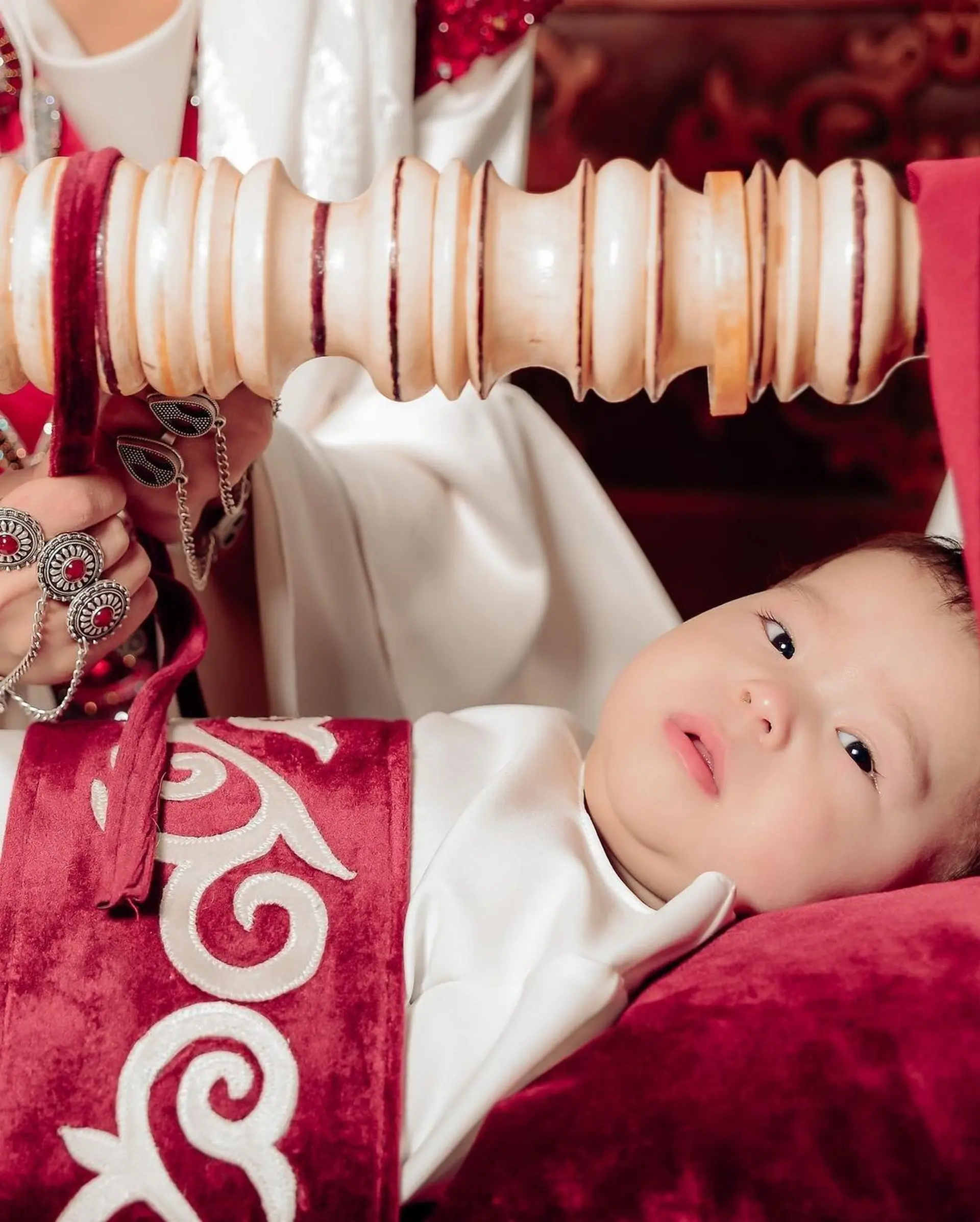 Shortly after birth, a name is given by the father or grandfather. When the mother and baby recover, the family hosts “Jeentek Toy”, a feast to introduce the newborn. One of the most important traditions is “Beshik Toy”, where the baby is ceremoniously placed into a beshik — a traditional wooden cradle. This role is given to a respected elder woman in the community.